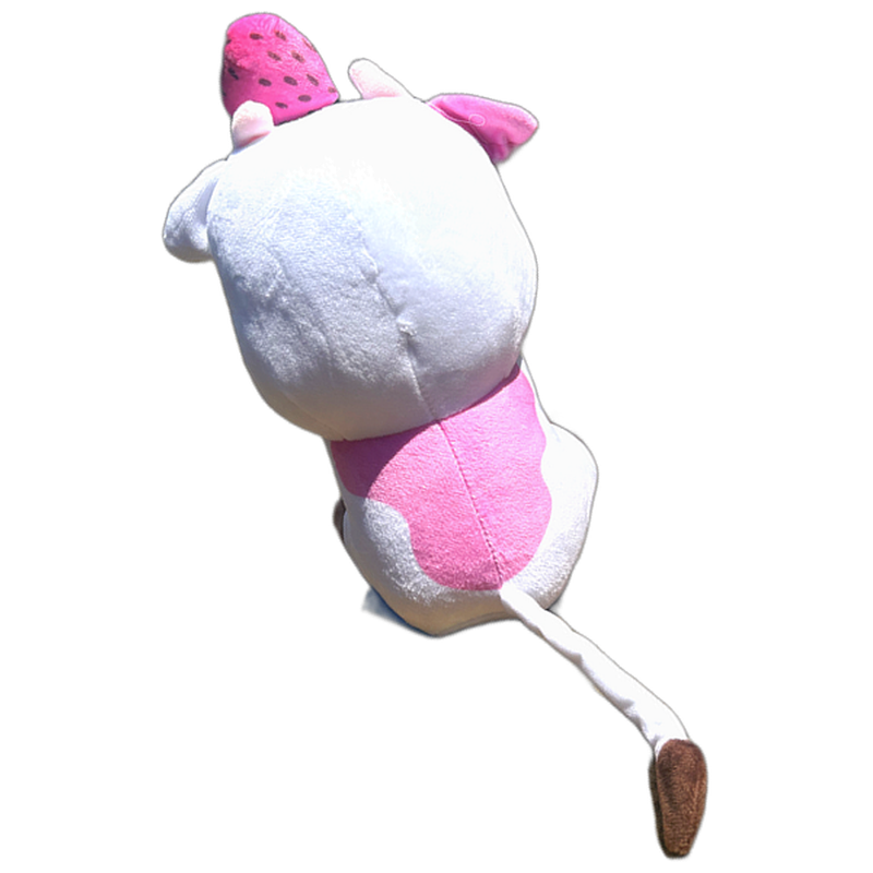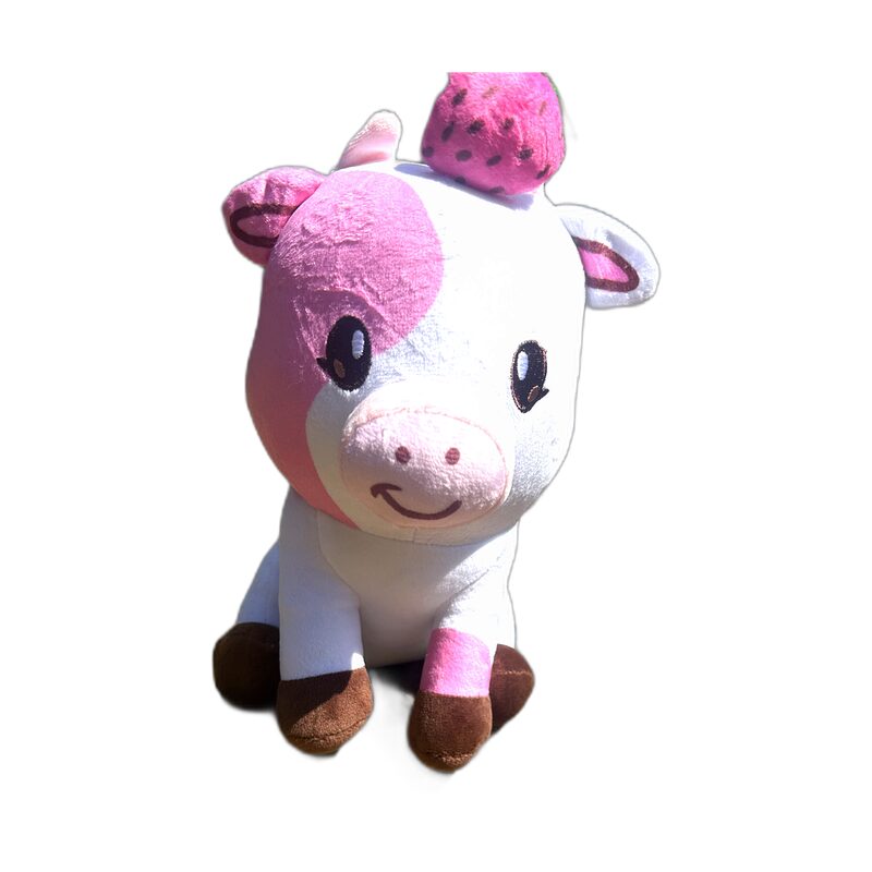 Meet Kayla the Strawberry Cow – the sweetest plush you will ever cuddle! This adorable stuffed animal features Kayla in her signature pink and white design with a cute strawberry hat on her head.